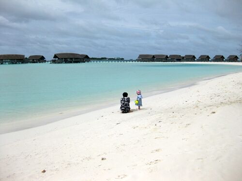 7日目①:1日居られる最後の日 朝の散策 1日中ココアにいられるのは、今日が最後です。今日は6時半に起きて、朝食前に島の東側にお散歩へ行くことにしました。島の東側に着くと…。 サンドバンクが伸びてる!