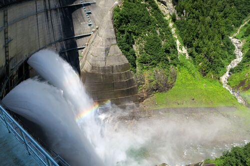 1日目①:立山黒部アルペンルート 扇沢駅から黒部ダムへ 1日目、夜も空けぬうちから出発です。いつもは朝寝坊な子供たちも、こういう時だけは早起き…。途中で休憩をはさみつつも、朝10時に扇沢駅に到着。駅前の駐車場はかなり埋まっていました。