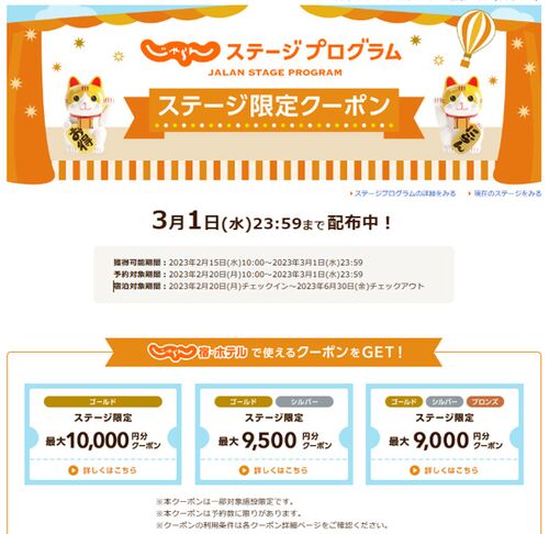 株式会社リクルートライフスタイルが運営する旅行サイトじゃらん.netは、 2020年3月16日より会員向けのプログラム「じゃらんステージプログラム」を開始しています。 【2023年2月20日更新】私は2021年9月にゴールドステージになり、早くも1年半が過ぎました…