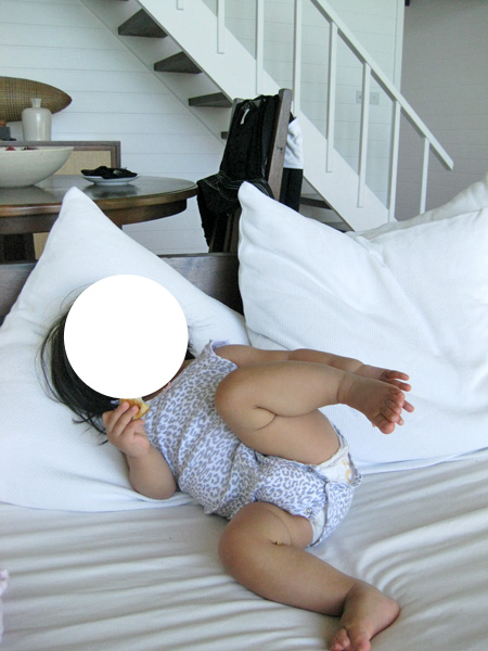 朝食後、相方は最後のシュノーケルへ。私は昨日すでに満喫したので、今日は海に入りません。