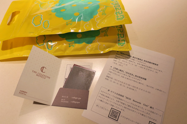 全国旅行支援が始まったからか、チェックイン時はとても混雑していて、到着からチェックイン終了まで時間がかかりました。京都はこれからトップシーズンへ、しかも全国旅行支援があるので、今後もしばらく混雑が続くのでしょうね~。時間はかかったものの、座って待つことができたので苦痛ではありませんでした。