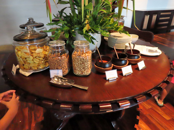 席について飲み物を頼んだら、テーブルにあるナッツ類をいただきに行きました。
