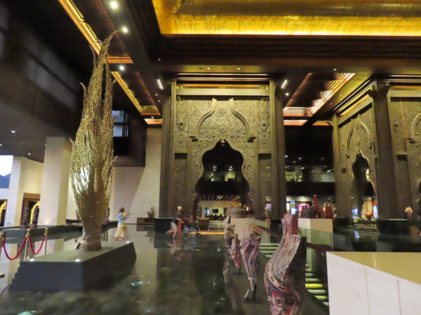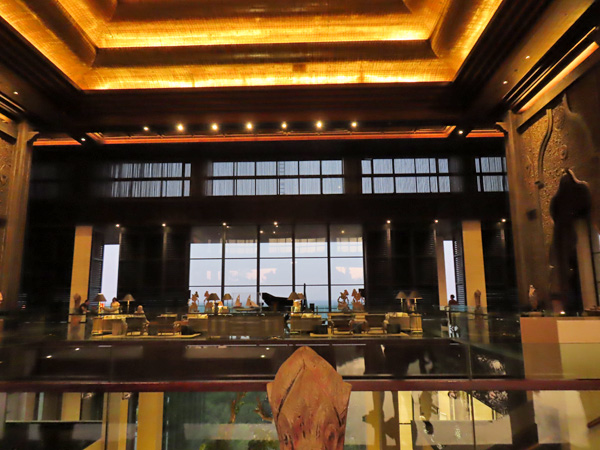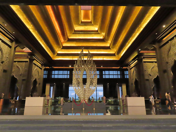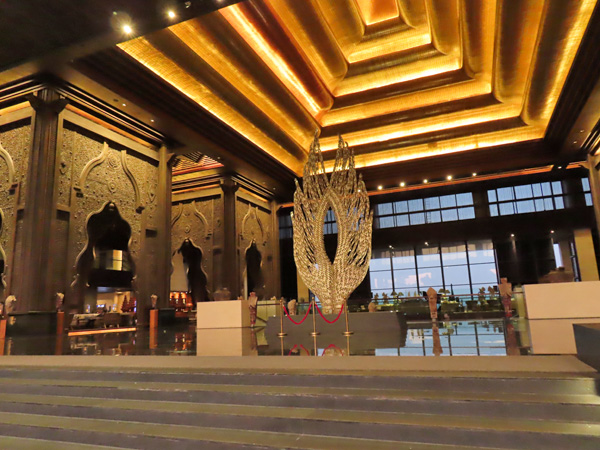 カクテルタイムを楽しんだ後は、ホテル内散策へ。まずはロビーへ行ってみます。