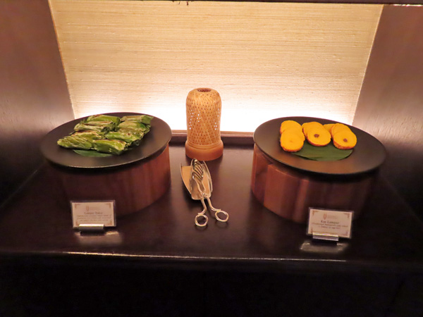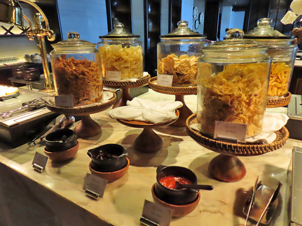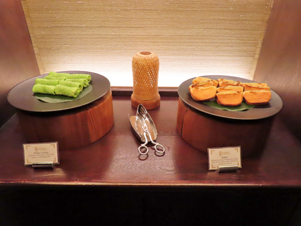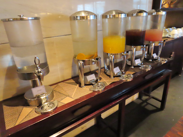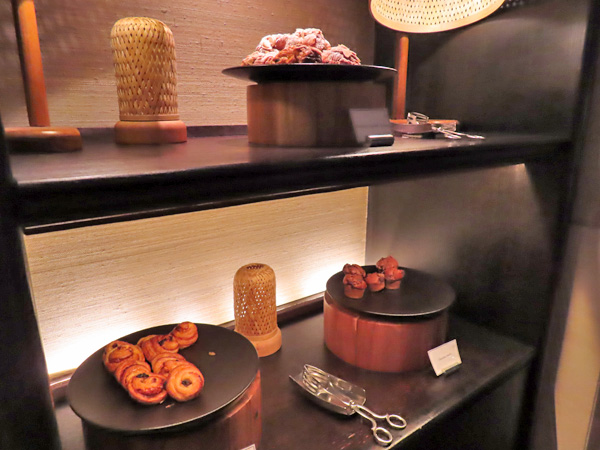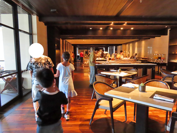 屋内のテーブルに着き、飲み物を注文した後にブッフェ台を見に行きました。