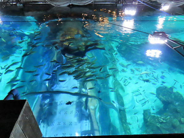 ちょうどダイバーさんが入っていったところでした。ダイバーさんが入った途端に集まりだす魚たち…。ダイバーさんになついているんだなぁ~。