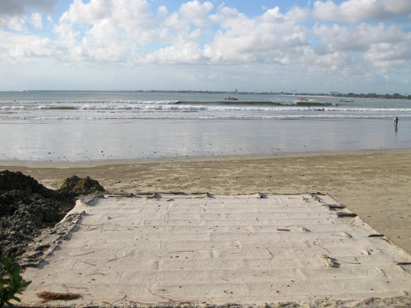 日差しが強いので、私はちょっと日影に避難。ビーチ沿いに下の写真のような、建築物の跡があります。