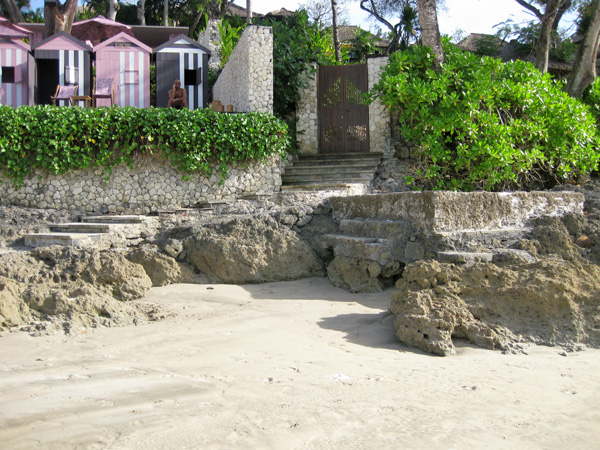 上の写真のように、ビーチからホテルに入る階段は途中で砂浜が侵食されたと思われ… かなり危険なので、特に子連れの場合は注意が必要です。