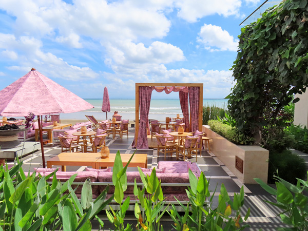 夜はイカンバカールになるであろうエリアには多くのテーブルやデッキチェアが設置されています。